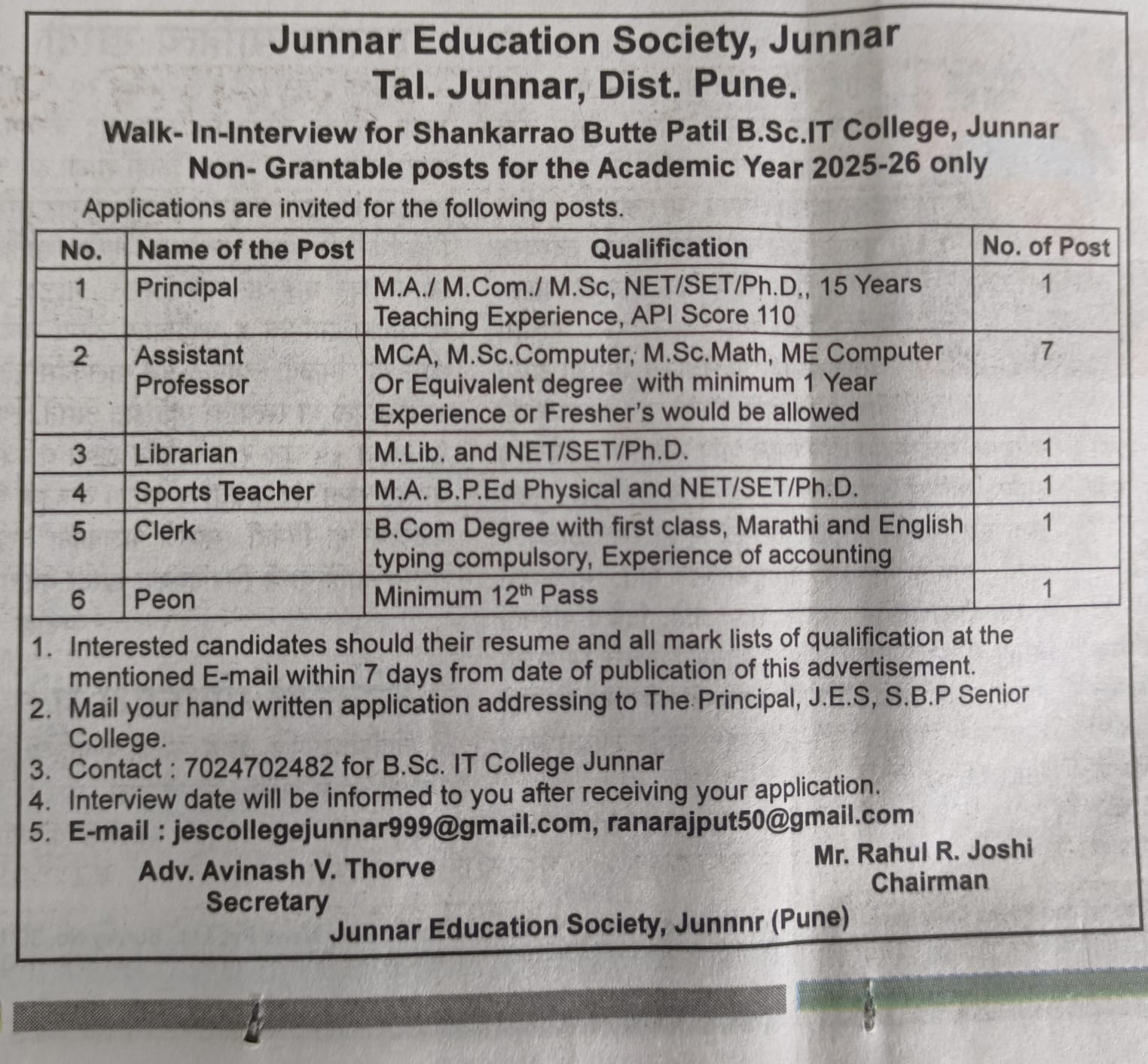 Copyright © 2025 All Rights Reserved by Junnar Education Society Shankarrao Butte Patil College Junnar